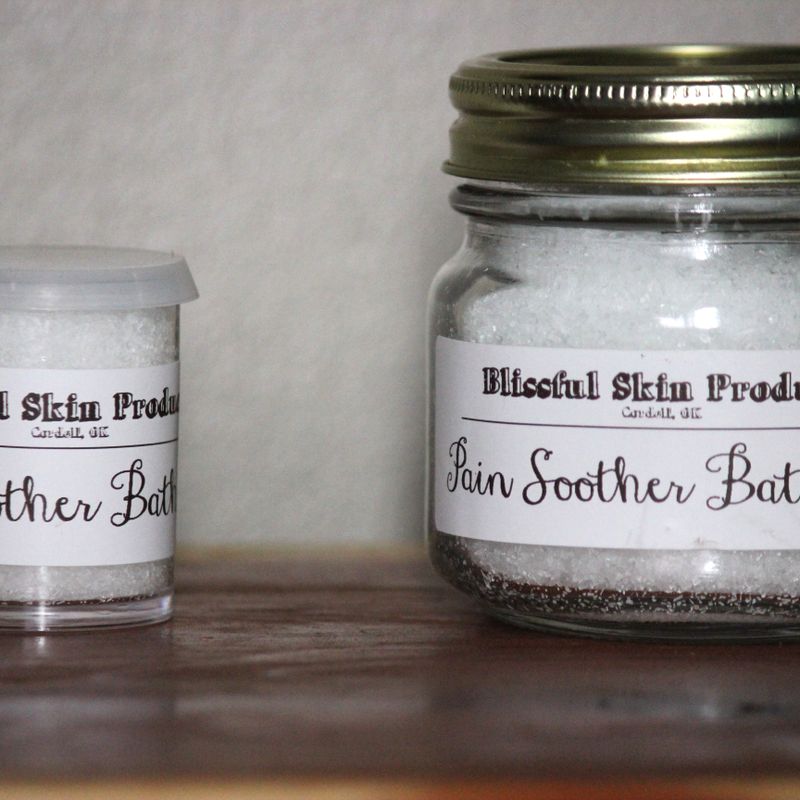 Pain Relief Bath Salts. Relieves inflammation, pain, aches, muscle tension, joint pain, headaches, leg cramps, cold/flu aches, aches related to stress.... Bath salts have same ingredients as Blissful Skin Pain Soother Cream....AVAILABLE IN 8 OZ OR 2 OZ SIZES. *DISCLAIMER: This product is not intended to diagnose, treat, cure, or prevent any disease. These statements are not meant to replace the advice of a healthcare professional nor your own research. Products and claims presented have not been evaluated by the Food & Drug Administration. Information provided is for informational purposes only. Not intended for use with children. If you are pregnant, nursing, taking ANY medication or under the care of a physician for a chronic condition, please consult your physician before trying any essential oil products. If you have sensitive skin I recommend testing a small area. For external use only. Individual results may vary.