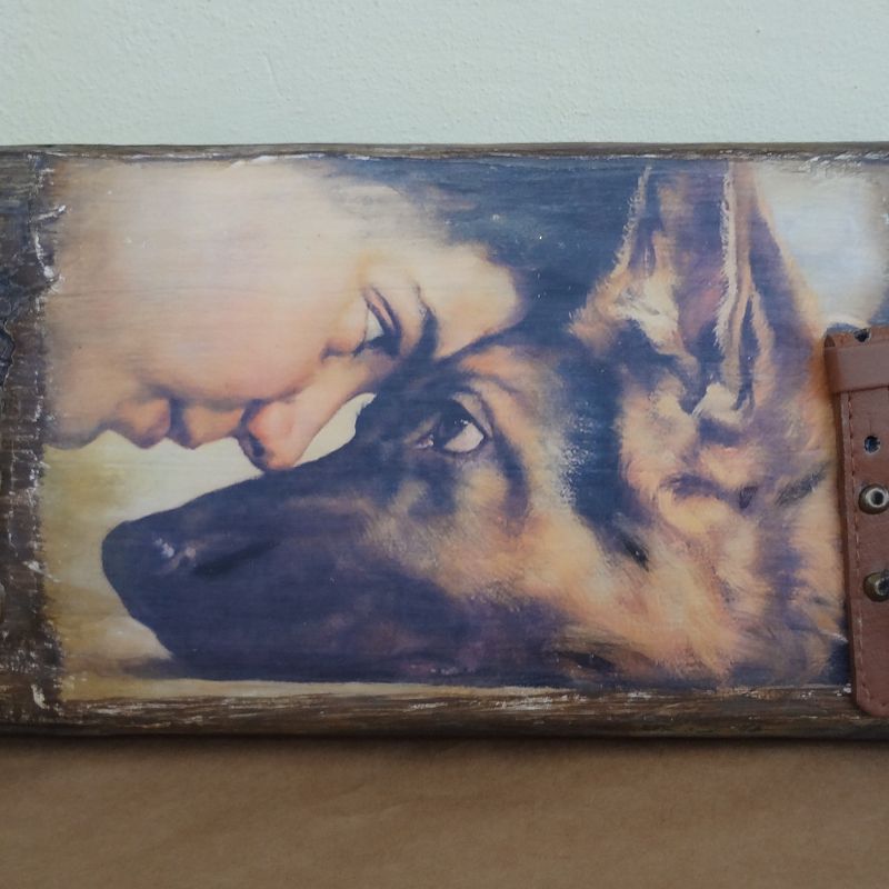 The hall is a place which you visit first when entering the house. Therefore, the key holder will add charm to your interior as a stylish accessory. The key holder always keeps your keys in one place, and you might want to hang there a leash of your pet dog as well. A very touching painting of an Italian artist Gianni Strino has inspired us for this key holder. The panel looks shabby, with a touch of dust, so you want to examine all of its cracks. A handmade key holder is made in old wood imitation technique, decoupage, and toning. It can be fixed to the wall with help of two hangers. Size: 29x14 cm. This original key holder can be given to your friends or beloved ones. Care instructions: moderate wet treatment.