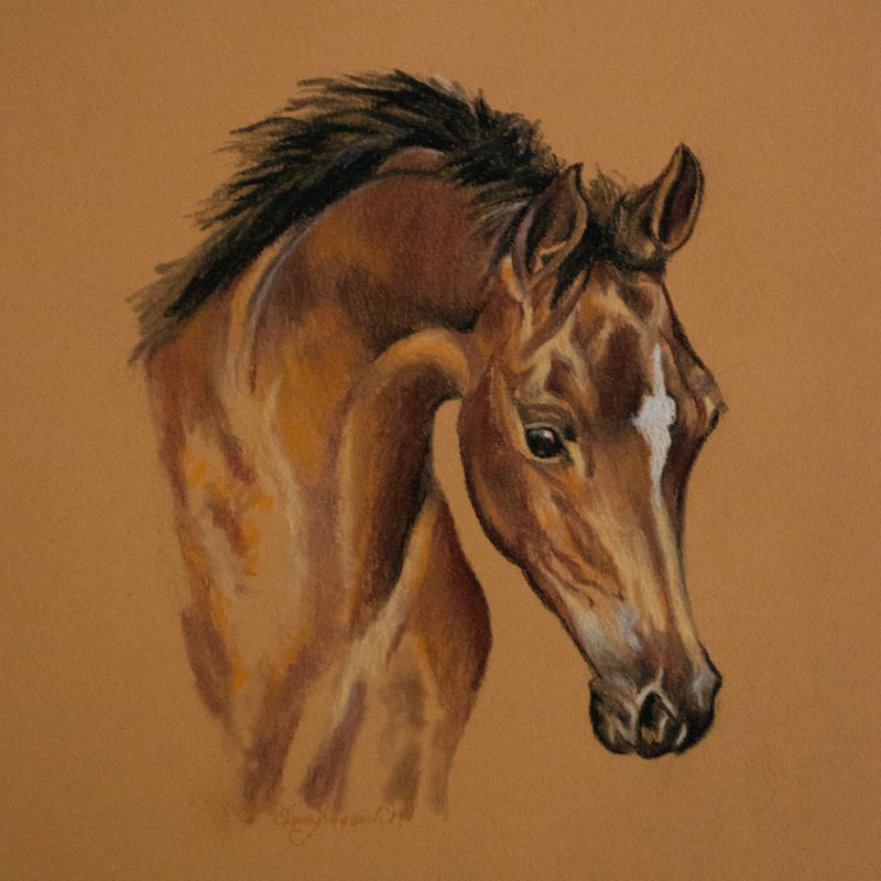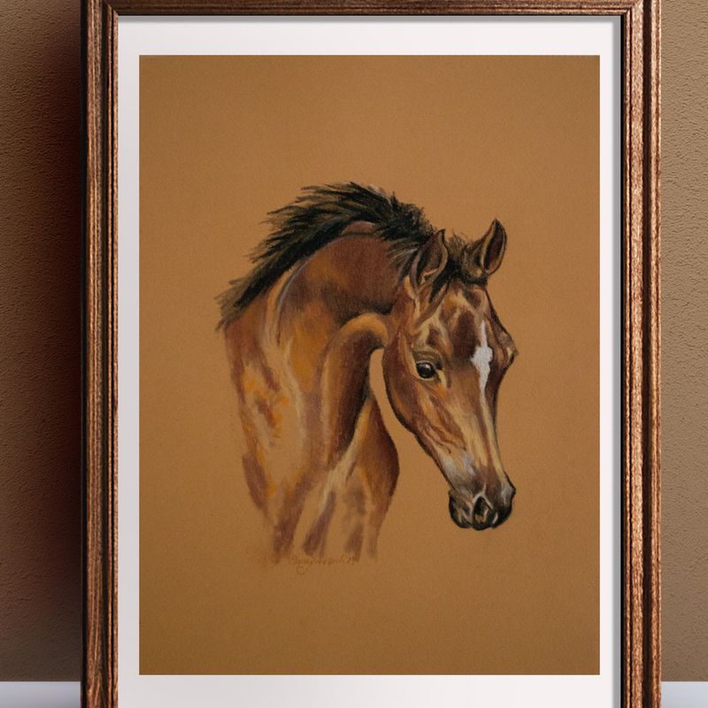 Original 9 x12 Pastel drawing of a baby foal. Please message me if your interested in a print of this drawing Frame not included