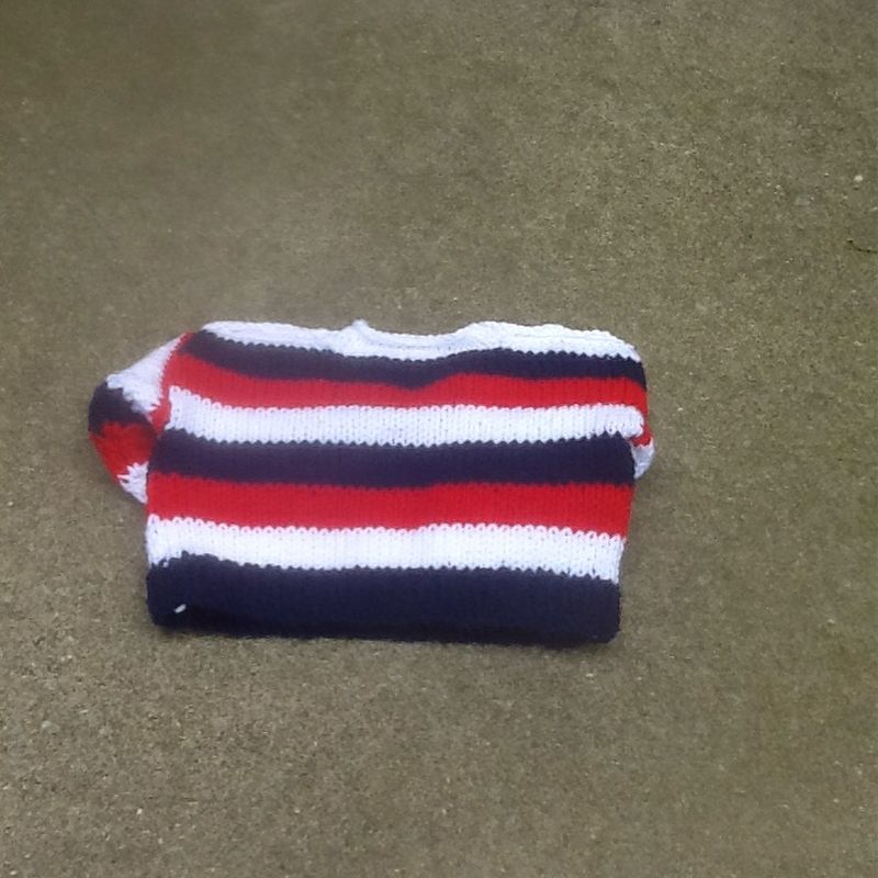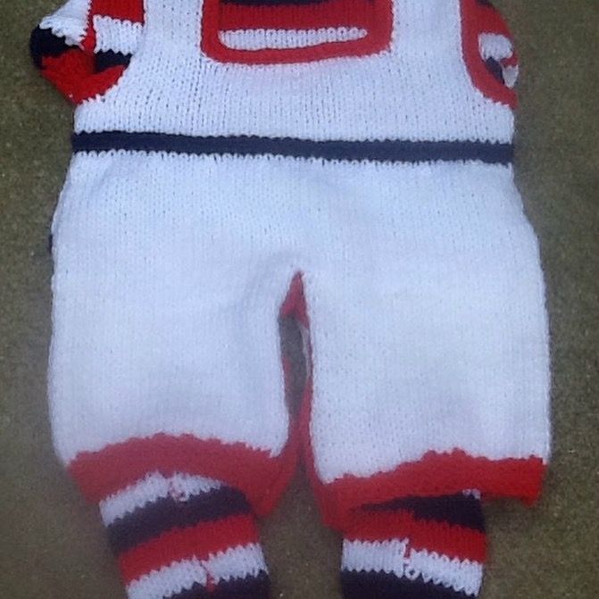 This set is for a preemie/newborn I fit, fits a 4-7 pound baby or 19-22" long. This set comes with red,white, and blue striped sweater,red and blue trimmed white overalls, and a cute striped pair of socks to keep the little ones feet warm.