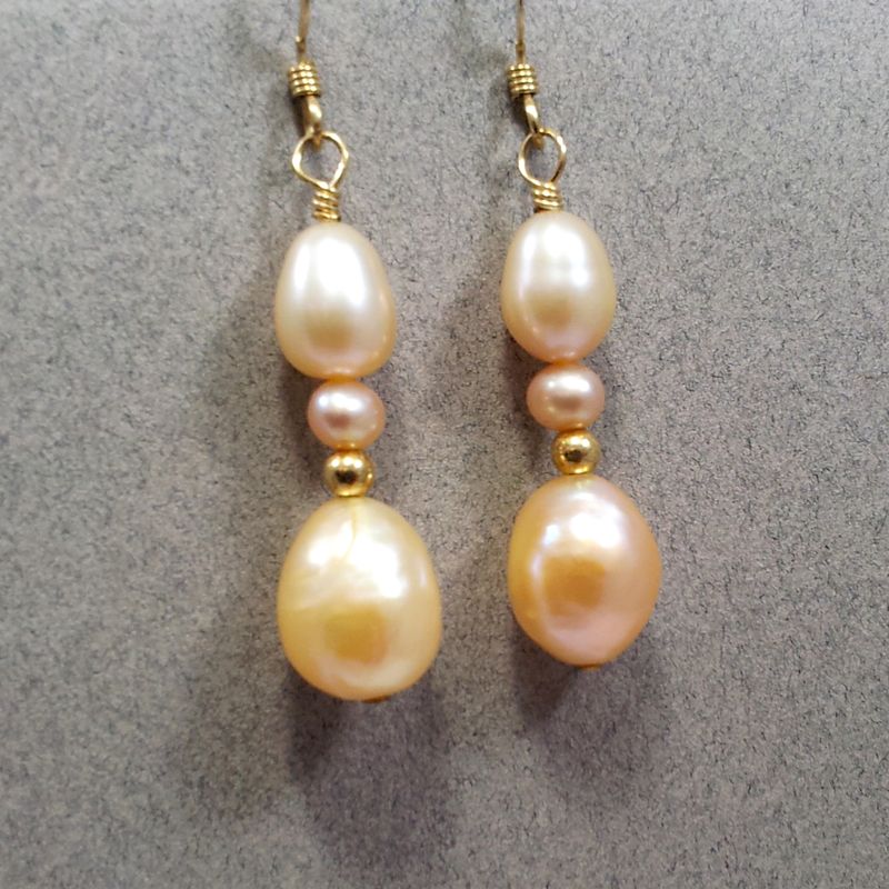 Real Freshwater Pearl Earring Handmade Large Pearl Drops Bridal Gold Earrings