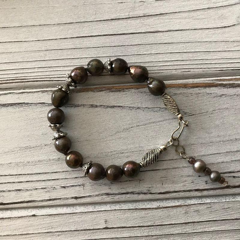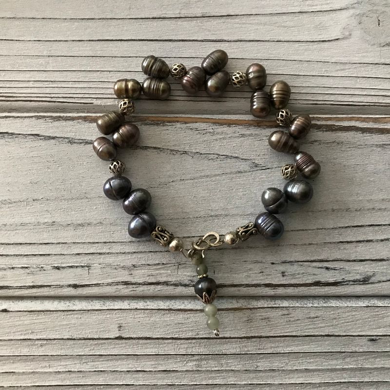 Pearls....worn by many, represents purity & integrity...combining pearls with similar stones created the perfect balance 🦋 #handmade #pearls #madewithlove #semiprecious #gemstones #metals #balance #fromtheocean #balance #healing stones #positiveenergy #smallbusiness #madebyhand #giftsforall #spiritual #bohemian #vintage #bohostyle #stretchbracelet #wristlet #cuffbracelet #adjustable #giftsforall #unique #oneofakind #customorders #custommade