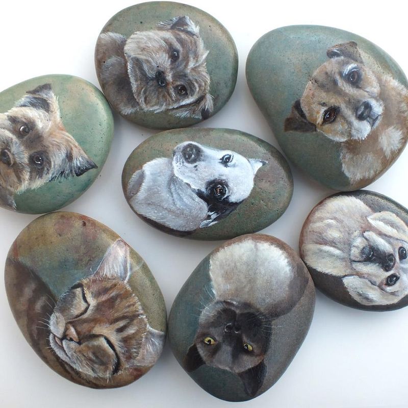 A pet portrait hand drawn & painted on a lovely smooth natural beach pebble from supplied photos (good clear photos taken in natural light are best). These make lovely tactile memory pieces or unique gifts ... one pet from £34 plus p&p / $47 plus shipping. Message to book your slot or for more info. Based in the UK but happy to ship internationally.