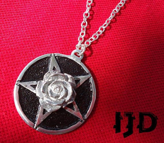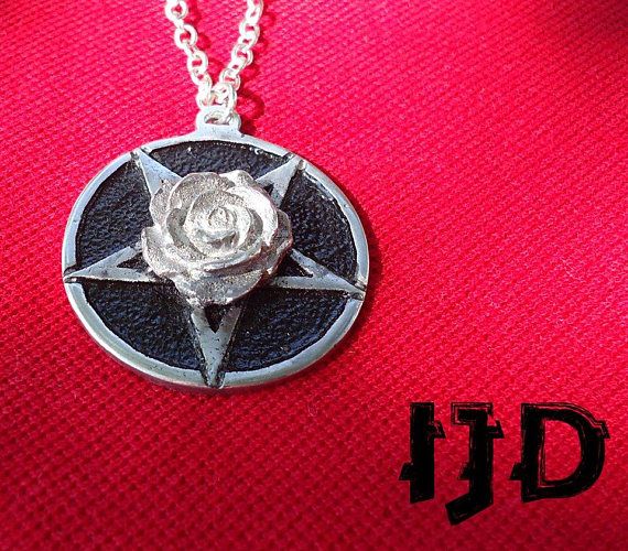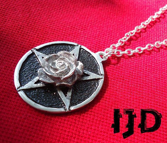 Pentagram Rose Necklace Pendant - Satanist Necklace - Wiccan Necklace - Rose Pendant - Witch Jewelry - Rose Medallion - Flower Pendant