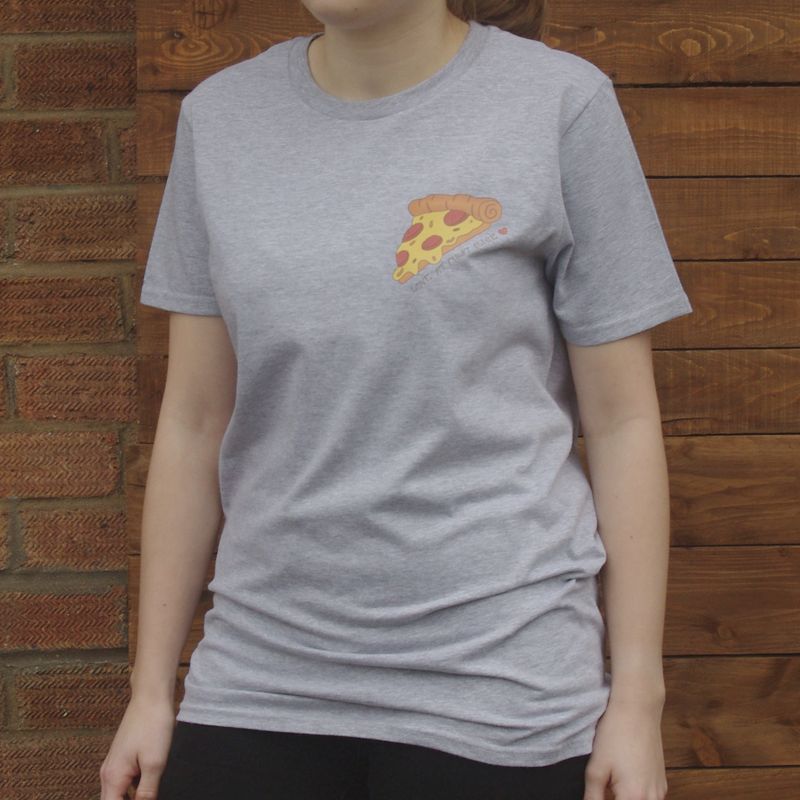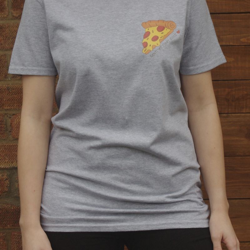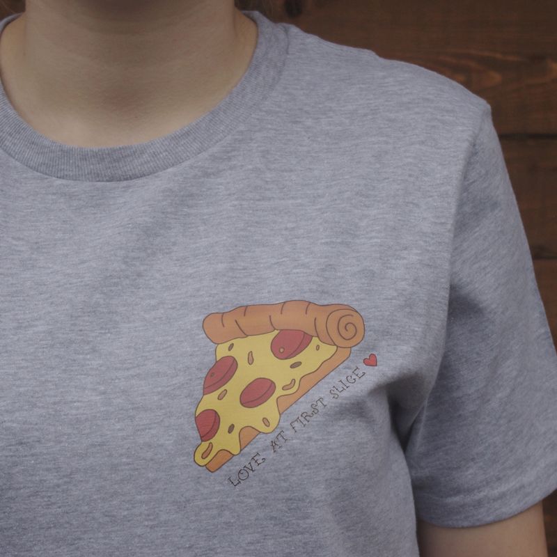 This pizza t-shirt is an ideal gift for any pizza lover or foodie! This unique pizza slice design has been inspired by tattoo art and reads "Love at first slice". Our pizza t-shirts are made from 100% combed ringspun cotton, making them soft and comfortable to wear. This hand illustrated pizza design is unisex so can be worn by both men and women. Sizes S-XL available. SHIPPING FROM THE UK - Shipping Prices Vary - www.redvesseldesigns.com