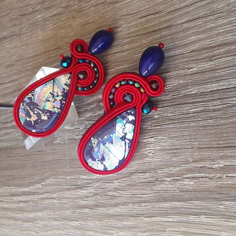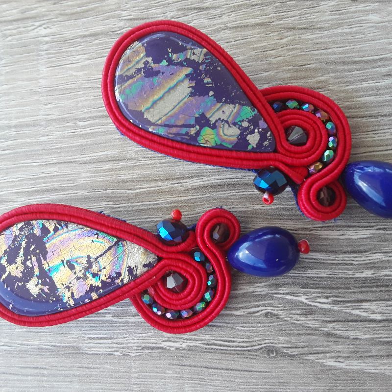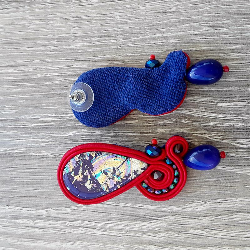 blue soutache earrings, earrings in polymer clay, unique piece, geometric earrings, colored earrings, fimo earrings, gift