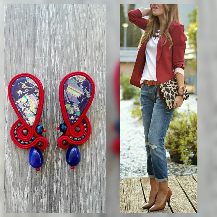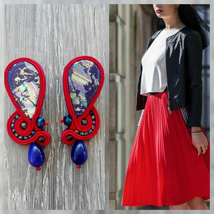 Soutache polymerclay earrings Gift and treat yourself to the earrings listed above, they are small earrings very light and refined, will light up your outfit and you will not go unnoticed. Polymerclay earrings composed of: - handmade fimo cabochon - crystal glass beads in various sizes - crystal drop - high quality soutache cord - size 2.5 x 0.9 in approx - back covered in alcantara - pin without nickel *** to be added the cost of shipping with registered international mail ( 14euro)
