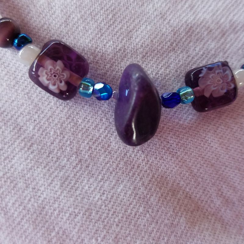 Like what you see or know someone who would? Please like and share! This one-of-a-kind necklace is a purple Lover's Paradise with many tones and a variety of shapes and sizes in a few turquoise and pink accents to add dimension. 21 inch long with a toggle closure. Made to last with considerate but normal use and made with quality products and much time and care for every detail To see more items visit my FB page. See link In my profile above.
