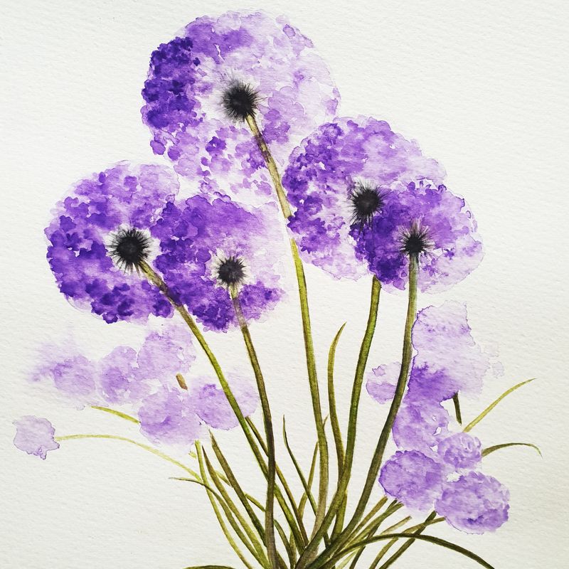 Purple garden flowers alliums. Size: 30.5x22.9 cm, 12x9 in. Painted on Winsor&Newton cold pressed grain fin 300 gsm paper. Frame is not included. How to order: * in my Etsy-shop www.etsy.com/shop/MilaArtandCraft * contact me in Instagram www.instagram.com/art_and_mi * e-mail me - azriaeng@gmail.com. I accept Paypal payments. Thank you for visiting!