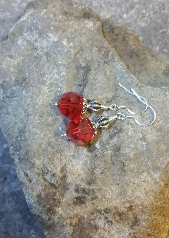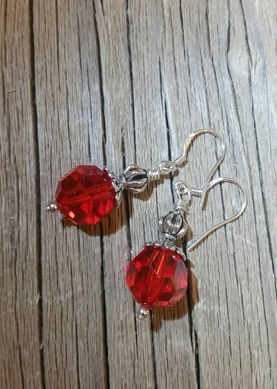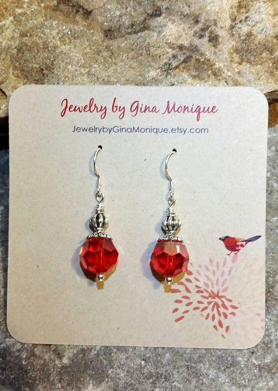 These elegant red earrings sparkle and shine. They are topped with antique silver beads. They are about 12mm in size and dangle about and inch and half from sterling silver ear hooks. They can be dressed up for formal wear or made casual for a fun and playful look. A great gift or treat for yourself. Included is an environment friendly earring card and decorative kraft bag sealed with my shop logo label. Check out my other items: www.jewelrybyginamonique.etsy.com https://www.etsy.com/listing/588164602/red-glass-earrings-handmade-red-earrings?ref=shop_home_active_7 Like me on Facebook: https://www.facebook.com/jewelrybyginamonique/
