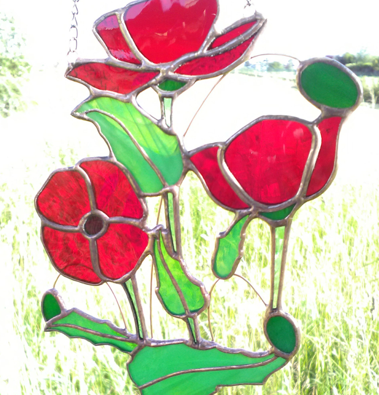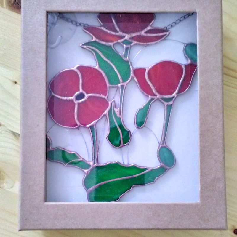 Red Poppy Stained Glass Window Suncatcher, Wedding Anniversary Retirement New Home Gift