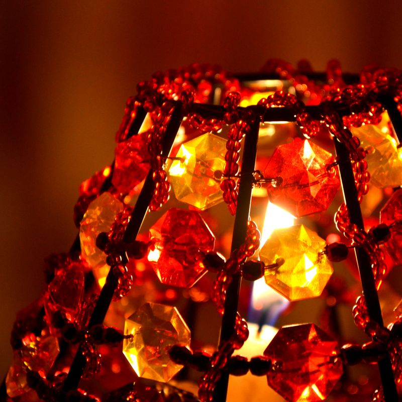 A beaded tealight lamp shade with red and yellow theme. Live colors will create joyful theme at your home. Elegant and simple desing for you. You can use that product on your living room, dining room, bedroom, even outside of your house too. You can use with smelly candle too! Don't forget checking our other products! ---------------------------------o-O-o--------------------------------- * This product made with acrylic beaded and copper wire. * 35 cm (13,7 inch) tall. * Made out of metal. * Requires only small circle candle. ---------------------------------o-O-o--------------------------------- Have a good day! -o Suzi Accessory o-