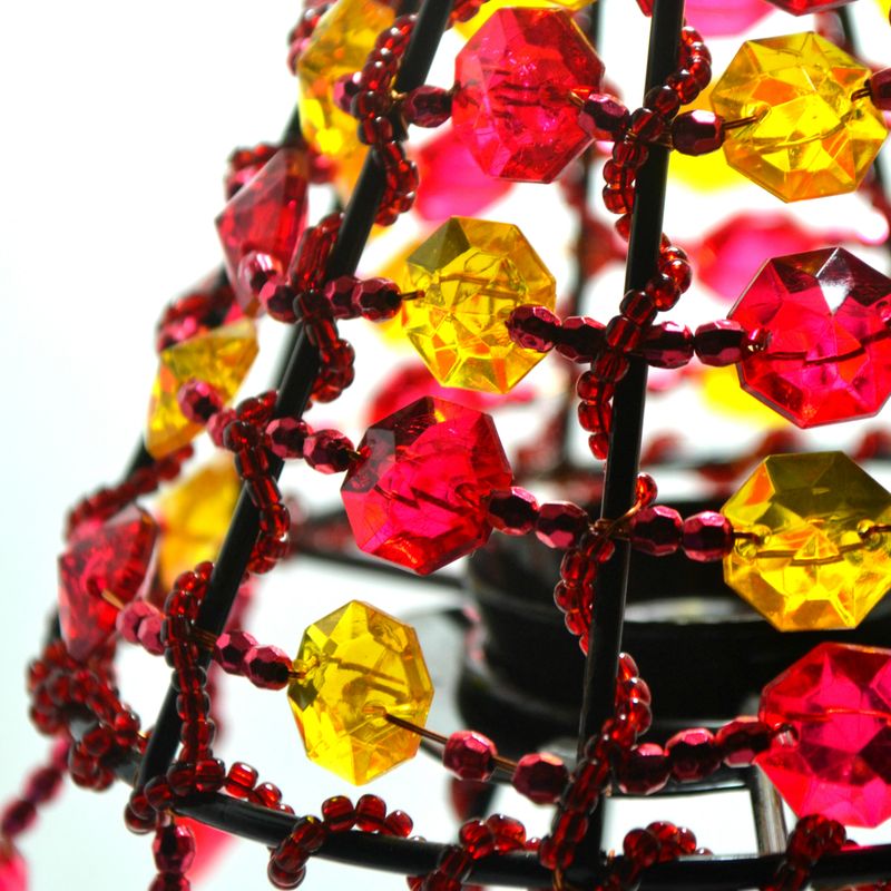 Red Yellow Beaded Tealight Lamp Shade, Beaded Candle Holder, Red Decor, Beaded Home Decor, Tealight Candle Holder, Decorative Lamp Shade
