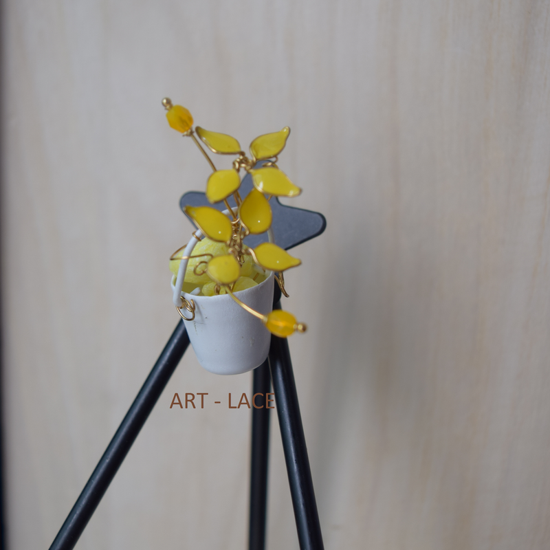 Miniature garden pots in the white color metal pail and a pair of Ixora yellow flowers with yellow glass beads. Size : 5 (Ht.) x 1.5cm Small magnet fixed at the back side of a pail. Miniature Doll House garden pots will be without magnets. Cute Art & Collectibles garden collection. Stick these pots to Doll Houses using double sided tape at the bottom. Flowers are handmade using wire, glass paints and resin. Fridge magnet is secured in a transparent Plastic box. This is a unique small gift item. Price not inclusive of shipping cost.
