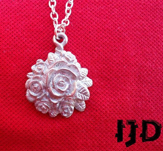 A cute rose bouquet pendant, handmade and hand polished, never loses color, never bends or brakes. Every part can be personalized, just send me your requirements via note or pm :)