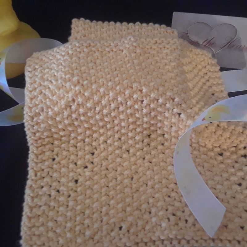 A three pack of cotton, hand knit baby washcloths. They are wrapped in ribbon, perfect for gift giving and each set includes a rubber duck or other bath toy. This is a wonderful present, or purchase for your own baby. 100% cotton, machine wash and dry. *Ribbon may vary from photo.