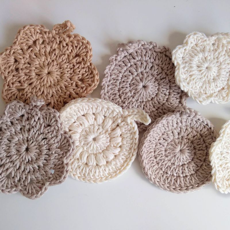 Set of 7 Eco-Friendly Re-Usable Pure Cotton Crochet Face & Neck Scrubbies