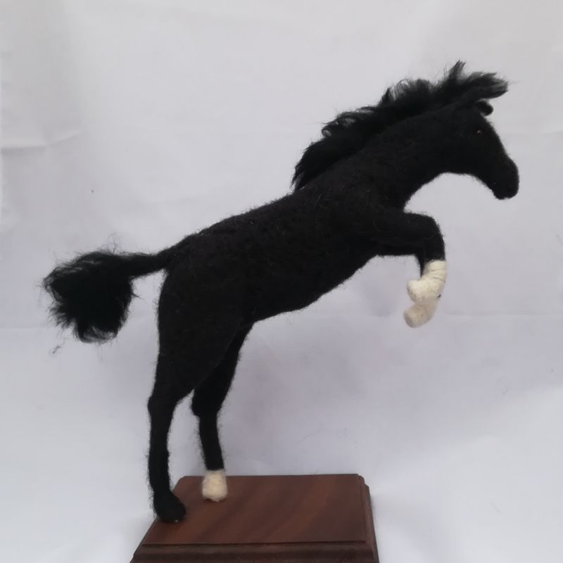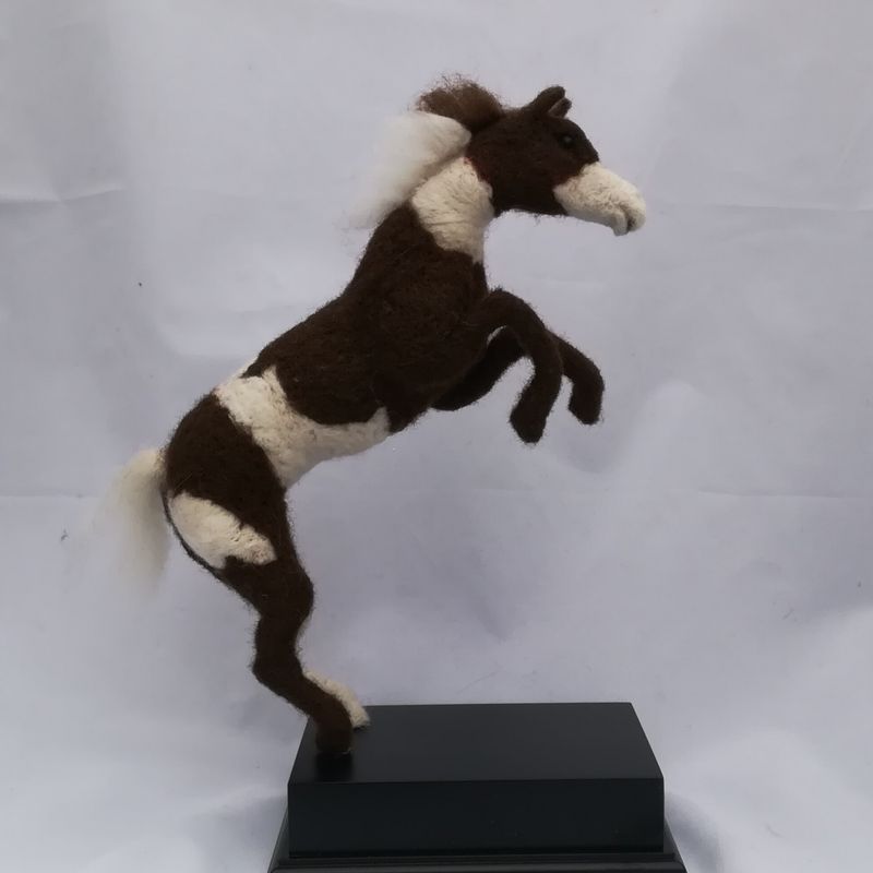 Needle felted pony, built on a wire armature, flexible legs, firmly attached to a black wood plinth, this particular one is sold but I can remake in any colour combinations, but of course as it is handmade and opal, another would be similar but not identical Price quoted includes UK delivery costs add £5 rest of the world