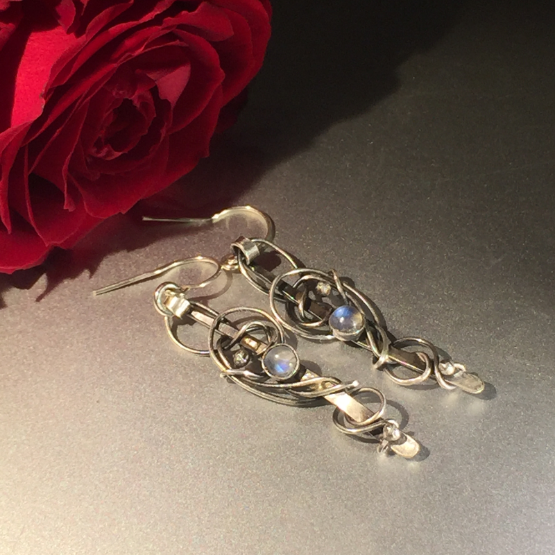 Silver Art Nouveau Moonstone earrings