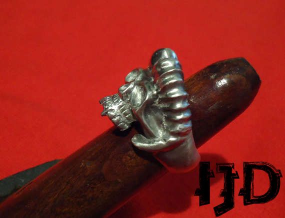 A beautiful skull demon ring made from the finest material, never loses colour and never bends or breaks, polished to a shiny finish. I also do a lot of custom work so if anyone needs anything in particular, send me a message here or on my facebook page, here is a link https://www.facebook.com/Imperial-Jewellery-Department-357308771123392/ Feel free to check out more of my work on the page :)