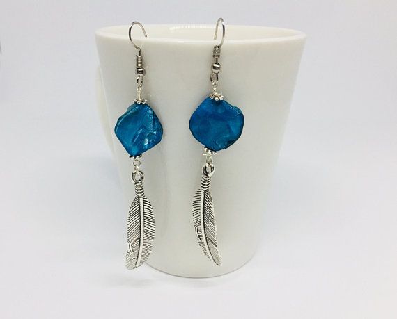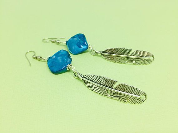 ** Order at - https://www.etsy.com/au/listing/603436747/long-feather-earring-blue-gemstone ** These big blue feather earrings have been made with long silver feather charm and turquoise beads on a sterling silver wire. It is long, unique, stylish, and has an exotic bohemian look. It goes well with any boho style dress and equally compliments your everyday look. A perfect design for all silver accessories lovers. Item ready to be shipped. Free shipping within Australia. Length of drop - 1.18 inches (3 cm) Please Note - For hygiene purpose, the ear wires will be replaced with a new one when you order. Thank you for visiting my shop https://deckorate.etsy.com Love unique. Buy handmade. ❤ Madhuleena