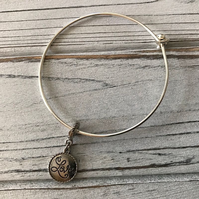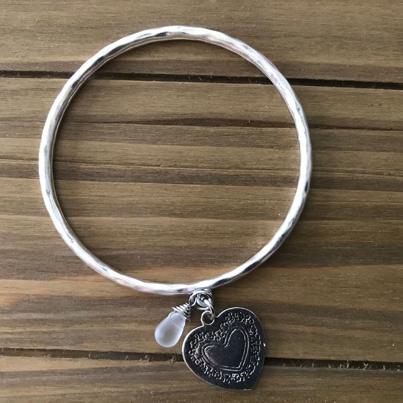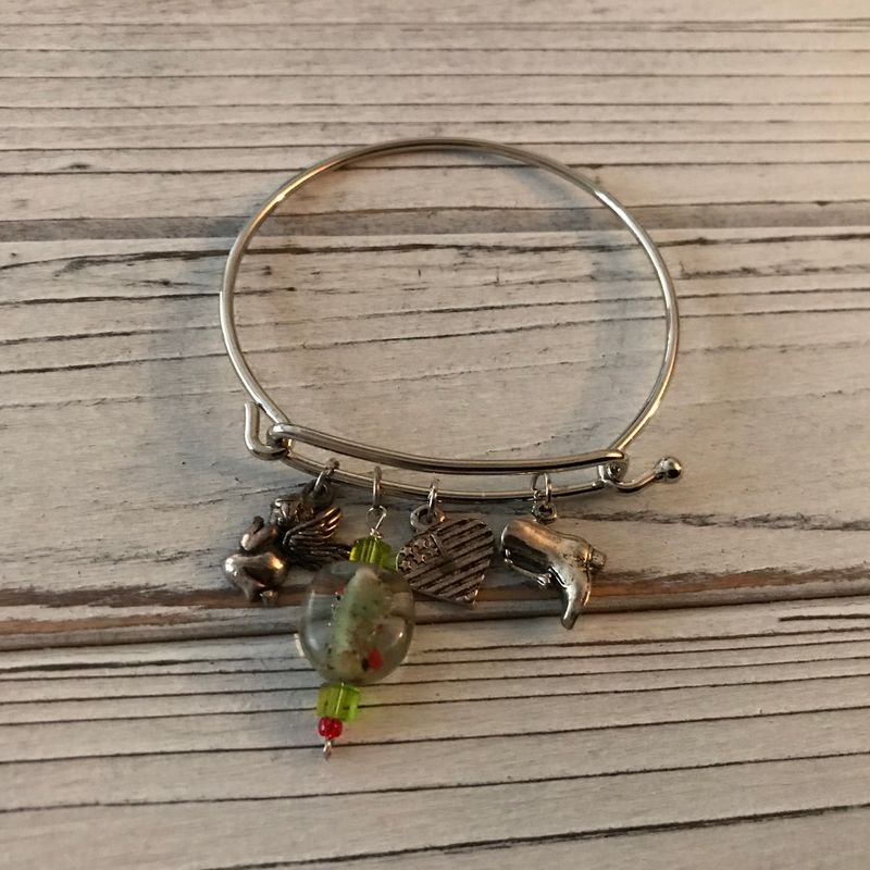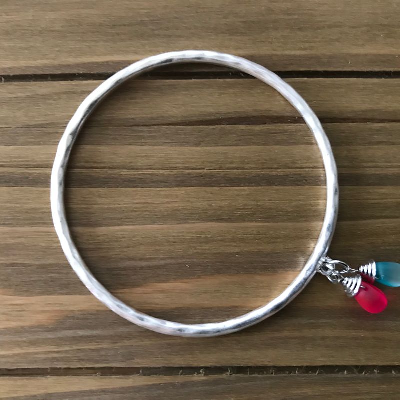 Silver-plated bangles, cuffs, wristlets...unique hanging charms, can be customer made to suit your colors and style....