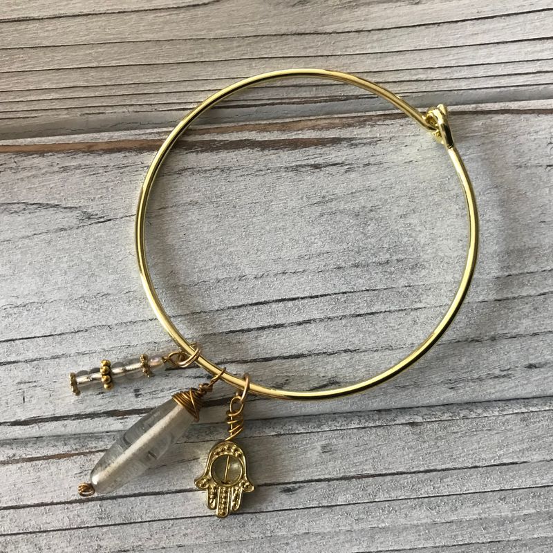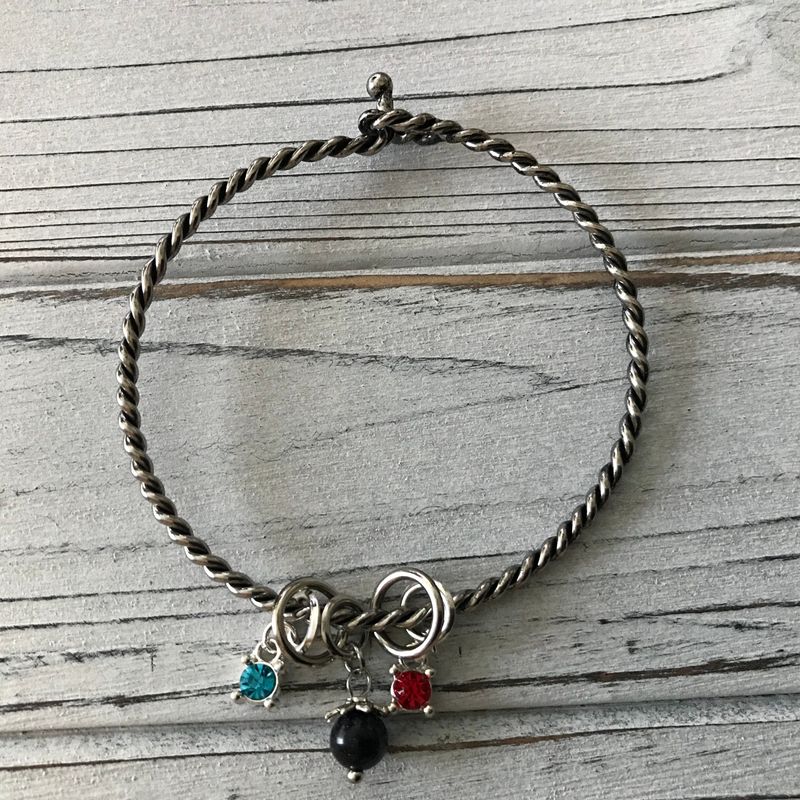 Bangles with hanging charms, gemstones, crystals. Stack them and mix and match...