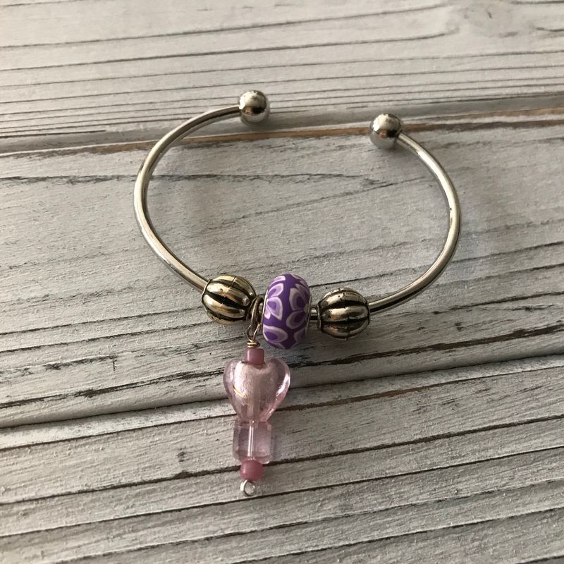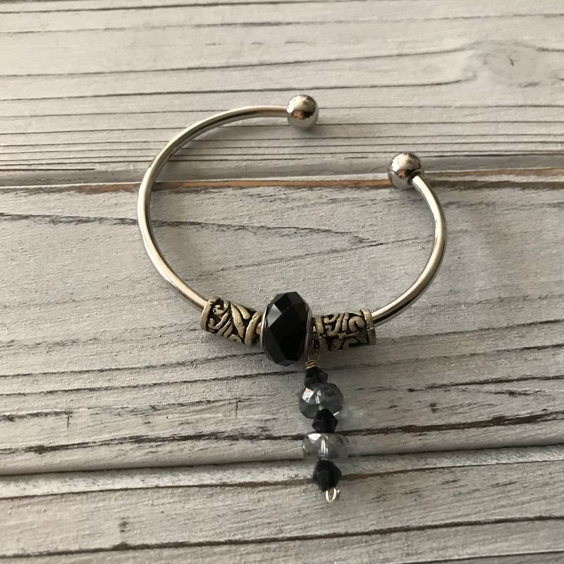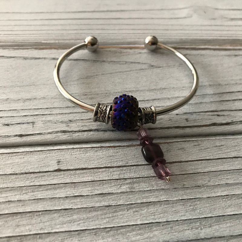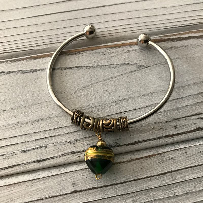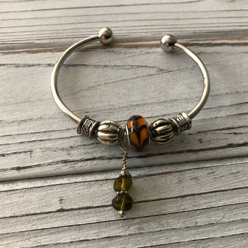 Silver-plated bangles, cuffs, wristlets...unique hanging charms, can be customer made to suit your colors and style....