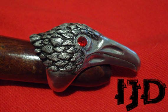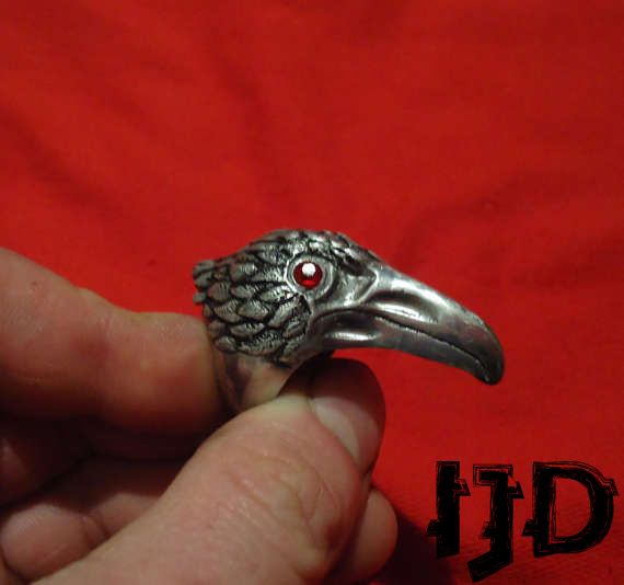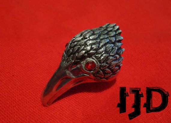 A great looking bird head ring made out of duraluminium, never changes colour, never loses its shine with two red gem stones for eyes. Check out more of my work on my facebook page Imperial Jewellery Department, here is a link https://www.facebook.com/Imperial-Jewellery-Department-357308771123392/ I also do a lot of custom work, feel free to name your wishes and I shall make them true :)