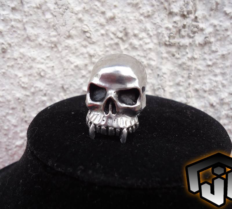 A very interesting and beautiful vampire skull ring with both a lower and upper jaw included, made from the finest material and polished to perfection. All sizes are available, just send me a pm here on Etsy with your specs. There is also a golden version of this product.