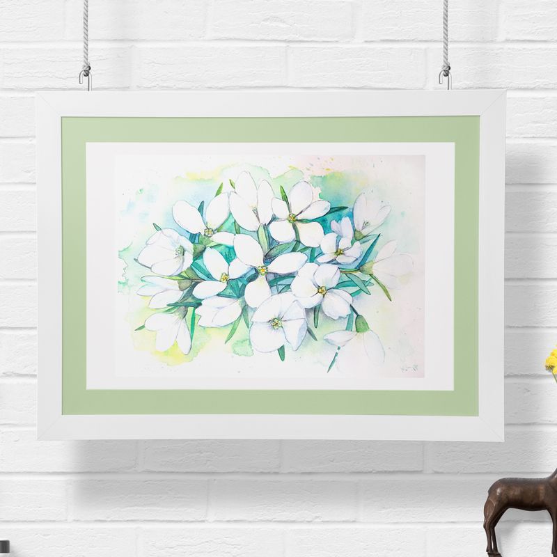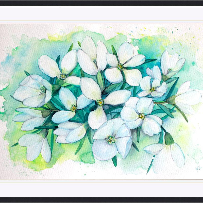 Snowdrops - gentle white flowers, first signs of coming spring. Size: 30.5x22.9 cm, 12x9 in. Frame is not included. High quality materials Winsor&Newton watercolor paper cold pressed grain fin 300 gsm paper. How to order: * in my Etsy-shop www.etsy.com/shop/MilaArtandCraft * contact me in Instagram www.instagram.com/art_and_mi * e-mail me - azriaeng@gmail.com. I accept Paypal payments. Thank you for visiting!