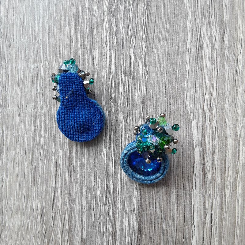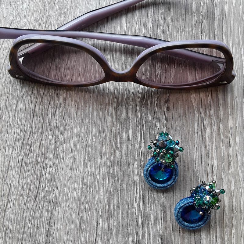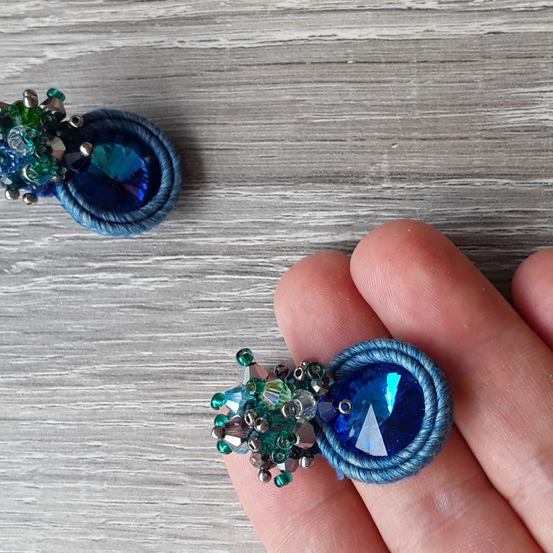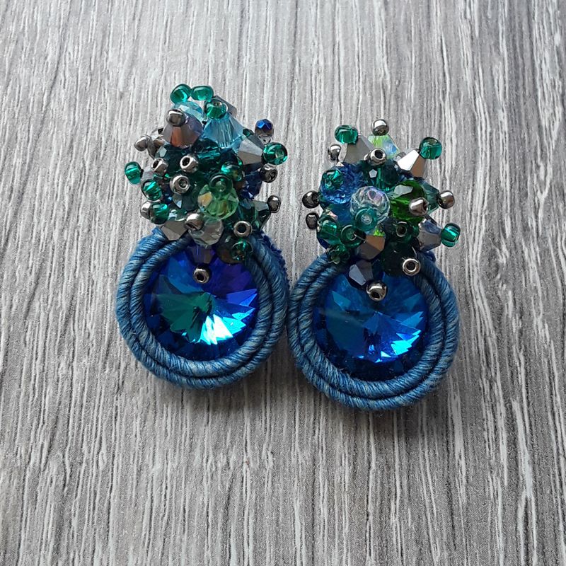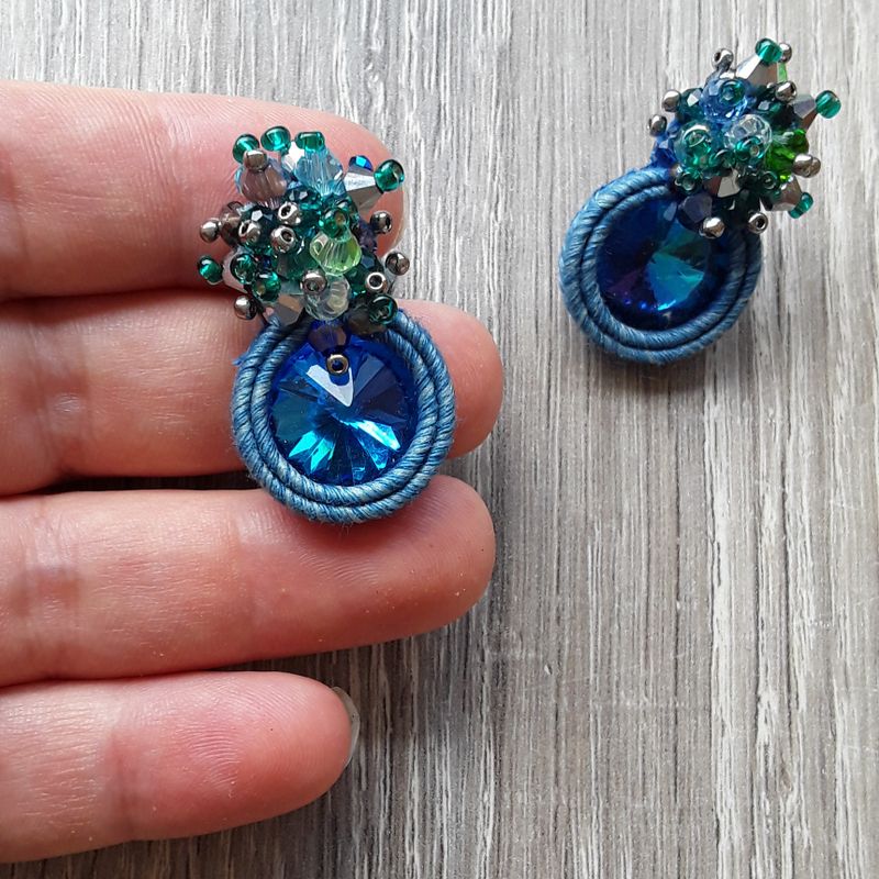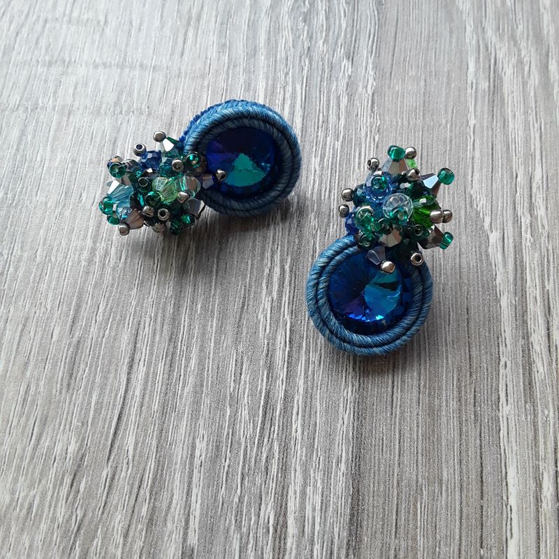 soutache lobe earrings, crystal jewels, elegant jewellery, blue earrings
