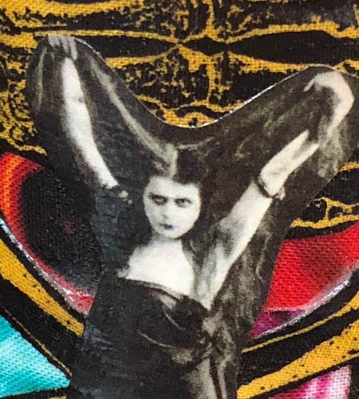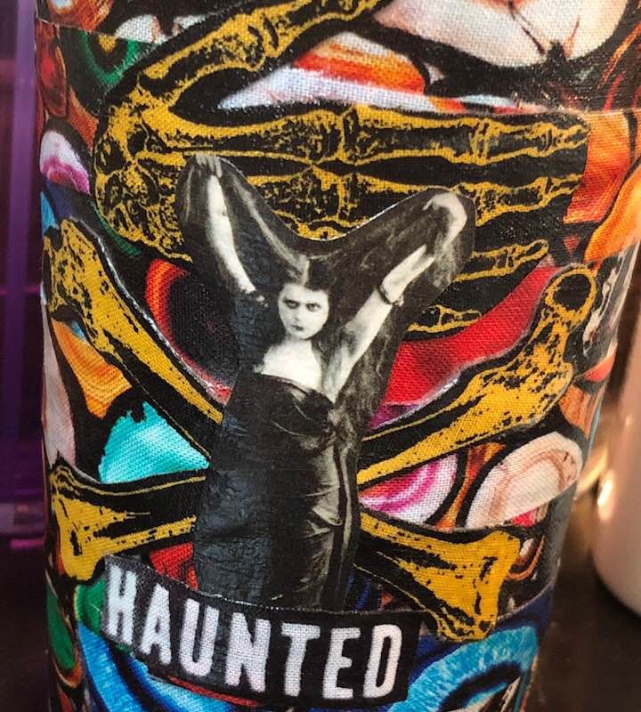 Approximately 3.5 inches diameter, 5 inches tall. Stunning vintage picture of a witchy woman, with a bony hand and crossed femurs behind her. The background is bright jewel-toned geode print, and I added the word "haunted". A dark but beautiful piece. Don't submerge in water or use for food/drink. To clean (if necessary) just damp cloth it :) These are perfect for holding your colored pencils, pens, markers, makeup brushes, etc. I've decoupaged these plastic tumblers with leftover pieces from other projects, and sealed with acrylic. Everyone who has been in my studio knows I can't part with even the smallest bit of cute paper or fabric if it can be used for another beautiful thing. I adore decoupage because its so unpredictable, I never know how it will turn out at the end. If you love your décor chaotic, kooky colored, randomly textured, and entirely one-of-a-kind, my pieces are definitely for you