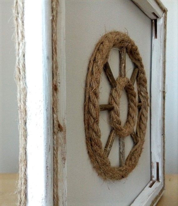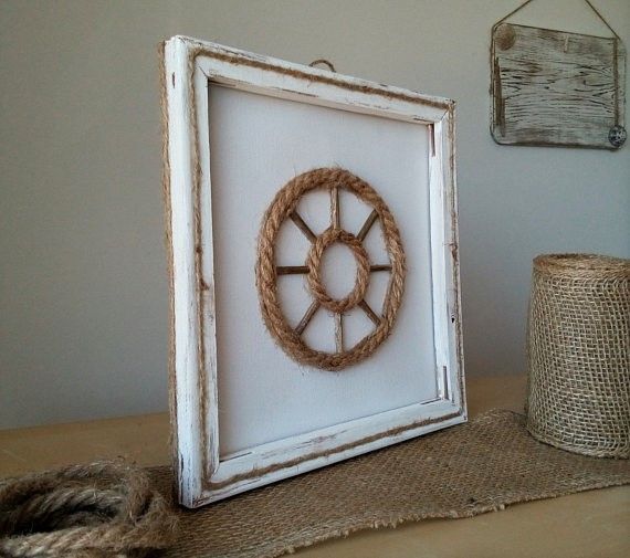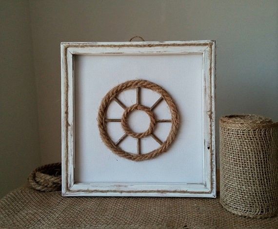 Rustic wagon wheel. Farmhouse wall decor. Wheel is made from rope and sticks. Wooden frame is painted with acrylic paint and decorated with thin rope. It can be nice decor for home, office or cottage. Also, it can be perfect present for many occasions and celebrations: Birthday, Anniversary, Mother's or Father's day, Moving, Housewarming, Wedding... Dimensions 25 cm x 25 cm (9.8" x 9.8")