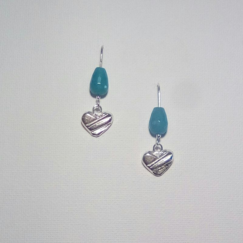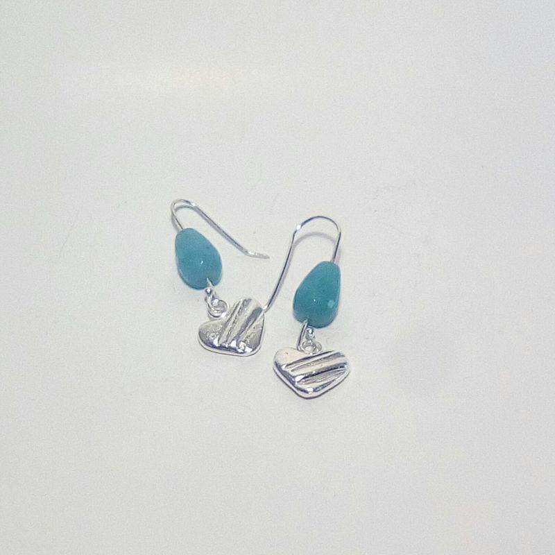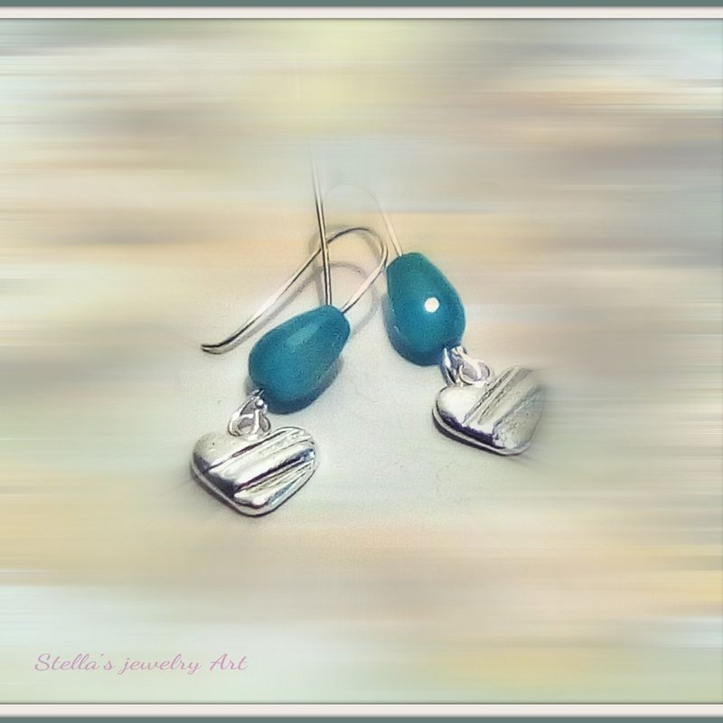 A unique handmade sterling silver heart pair of earrings with blue tear drop agate!!!! Ideal to be worn anywhere & anytime!!!! Agate enhances love, abundance, wealth, good luck, longevity, harmony. Materials: 925 sterling silver Texture:High polish Length: 4 cm Width: 1 cm Weight: 7,9 gr / pair