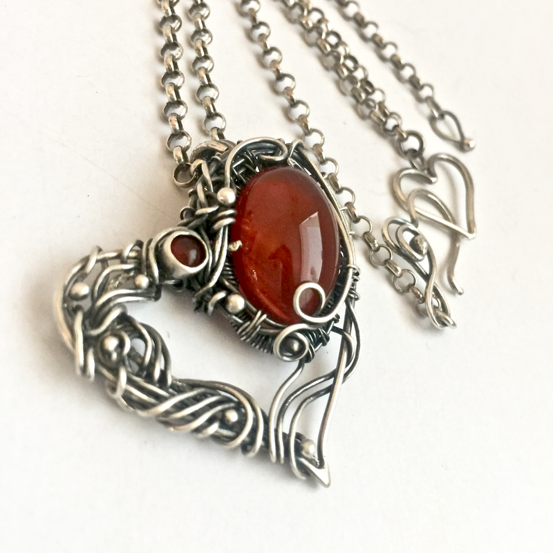 Sterling Silver Carnelian gemstone Heart pendant
