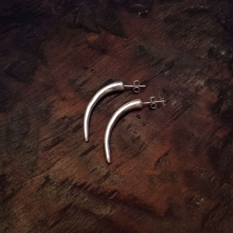 Sterling Silver Eclectic Tribal Elements Long Curved Tusk Earrings