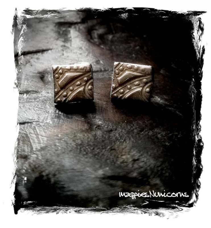 Sterling Silver Handmade Stud Tile Earrings #10 Truly Unique!