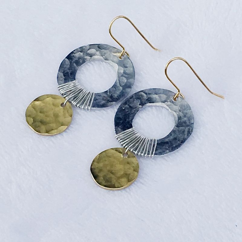 The inner circle - Rustic gold and silver tone hammered disc earrings