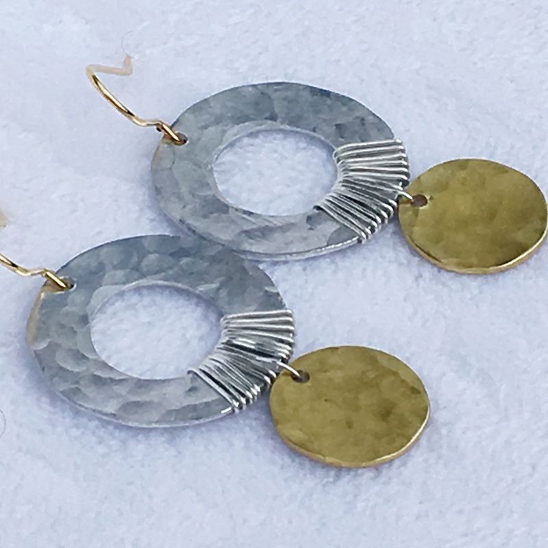 Standout with these unique rustic wire wrapped brass and aluminium earrings. Light weight. One of a kind.