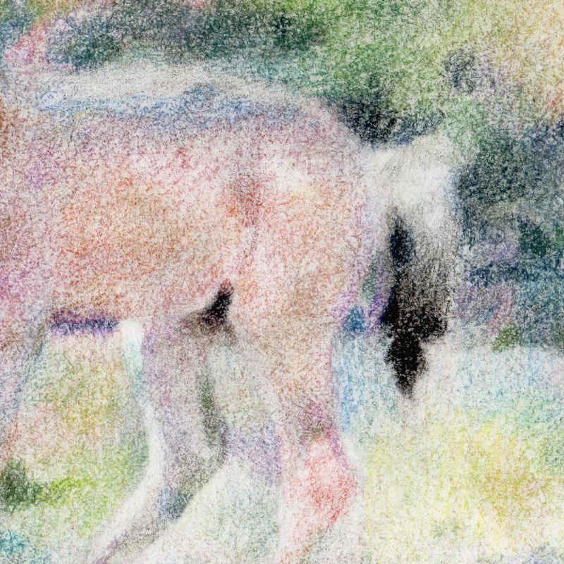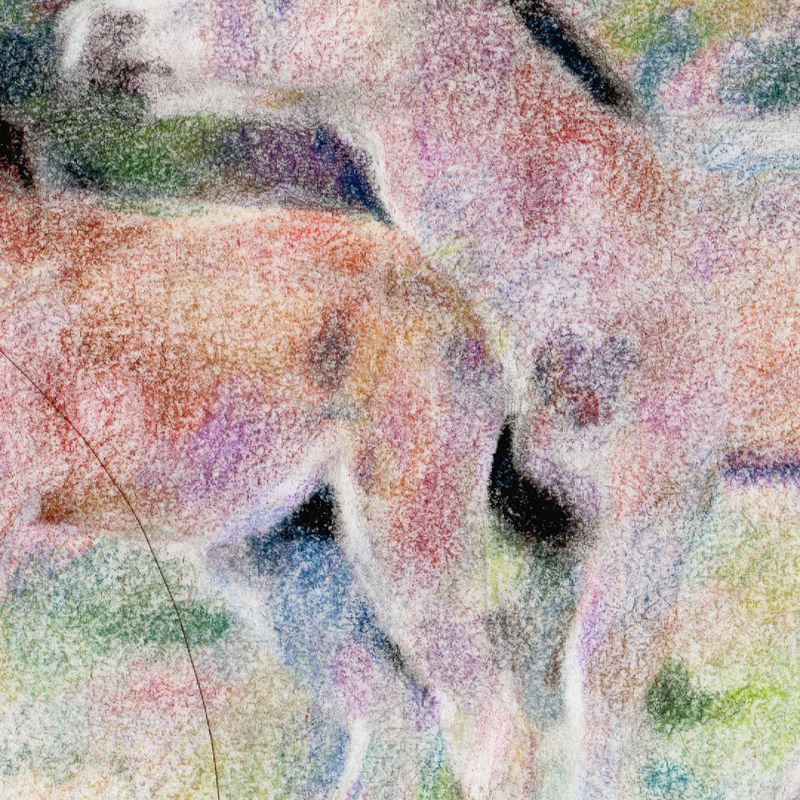 6"lenght, 3,5"hight. IT IS AN ORIGINAL DRAWING NOT A PRINT. The little foals are fairy-tale like drawing. I used the technique of dry pastel it feels as if butterfly wings were touching the paper. Very very soft. Very light. It is a drawing dedicated to children. I imagine it would look lovely in a little child´s nursary:)