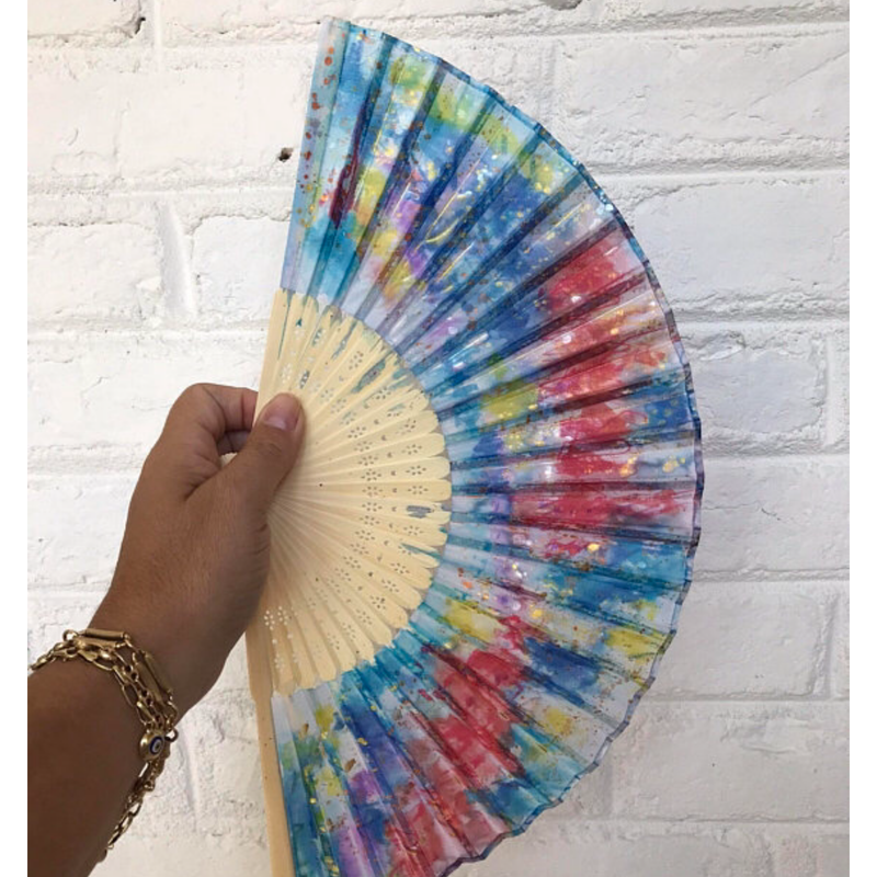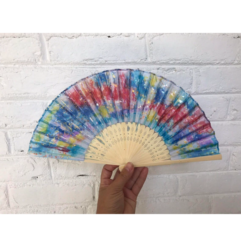 Tie Dye Hand Painted Hand Fan