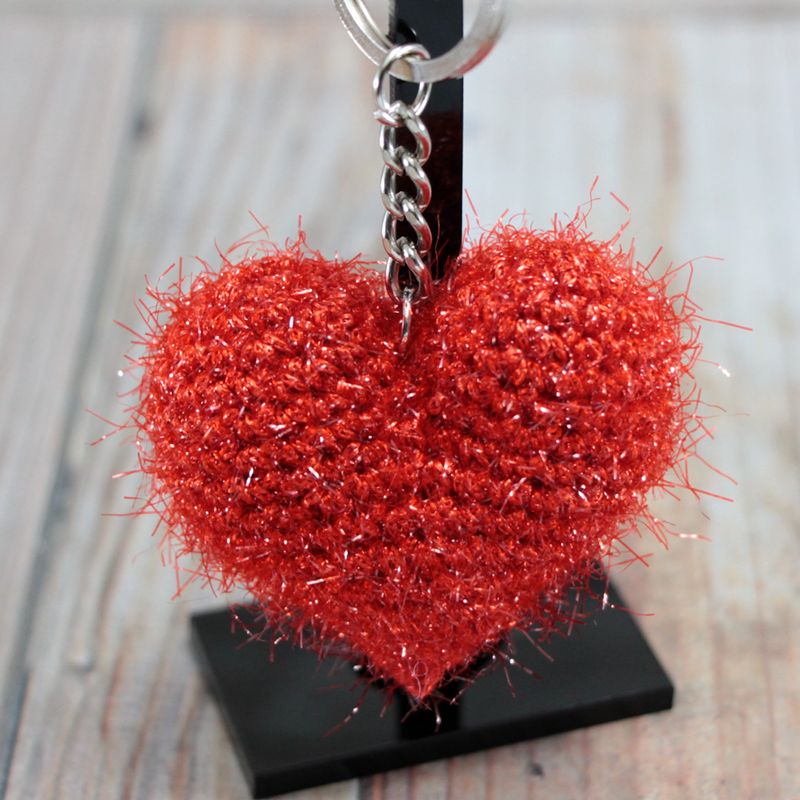 Valentines Day Gift for Her Heart Keyring Girlfriend gift Anniversary Gift Bag Accessory Heart Charm Crochet Heart Handmade Keychain