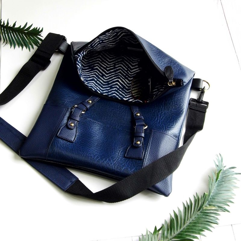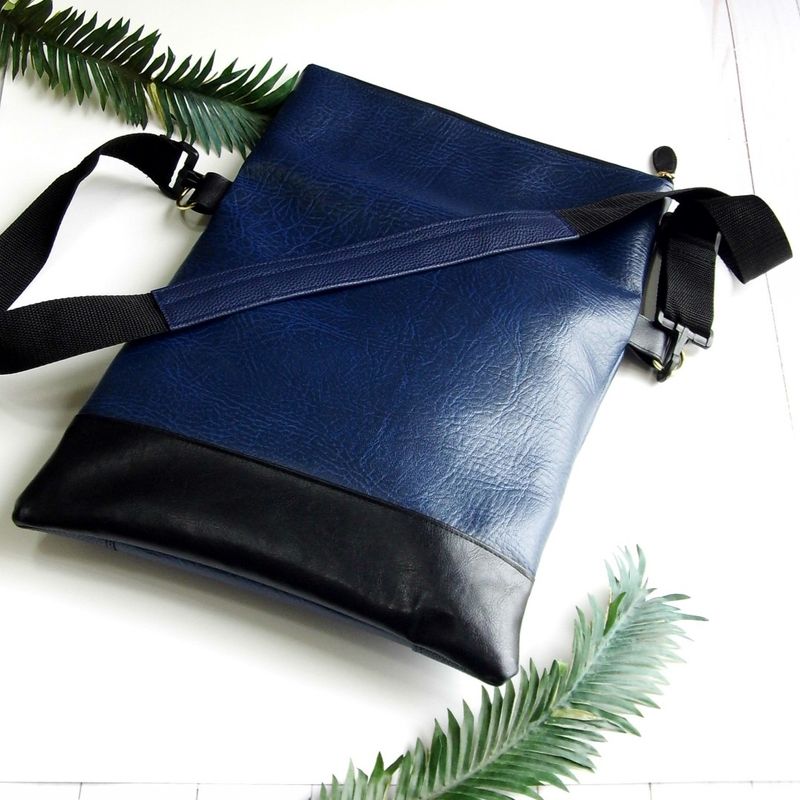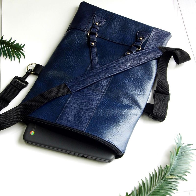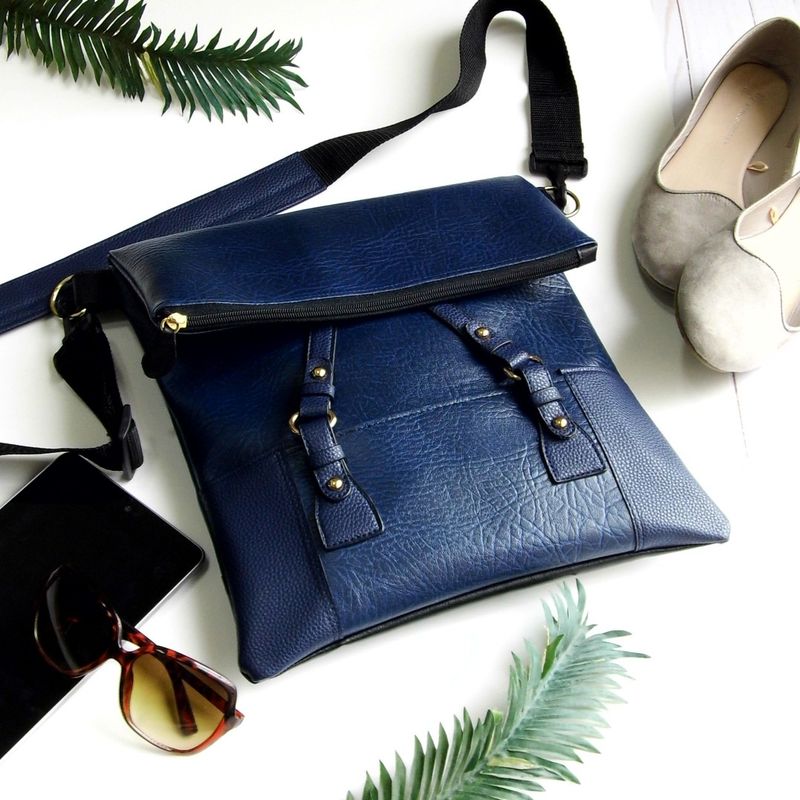 Vegan Crossbody Bag, Blue Crossbody Bag, Foldover Bag, Vegan Leather Shoulder Bag, Faux Leather Laptop Bag, Bespoke Bag