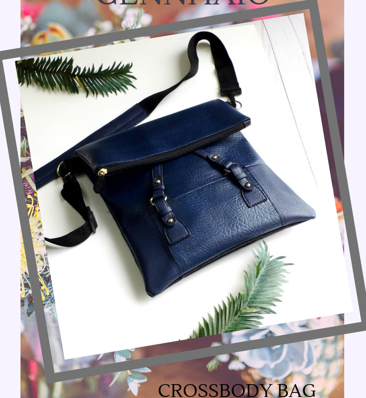 Foldover Crossbody Bag made from vegan leather and gently repurposed materials. This medium size bag is a convenient size, large enough to hold a 14” computer. The adjustable strap allows the bag to be comfortably carried on the shoulder or across the body. A functional and stylish bag, which is practical for everyday use throughout the year. Clean with a damp cloth will keep this bag looking crisp and pristine. Size: (W)13" x (H) 8x (D) .5”. Available from my Etsy shop https://www.etsy.com/shop/Gennhaio