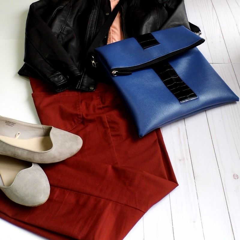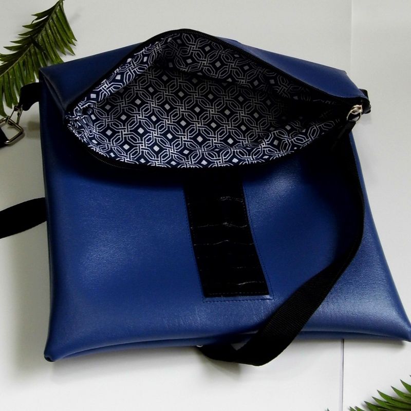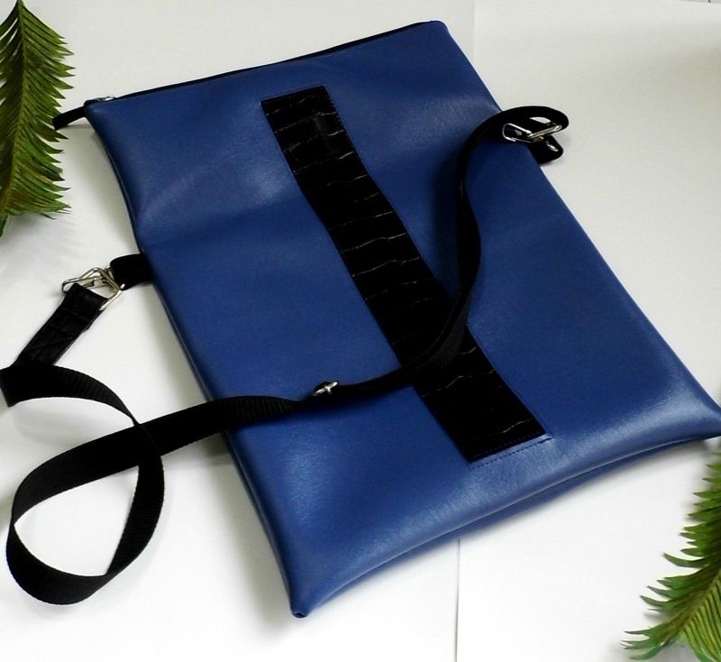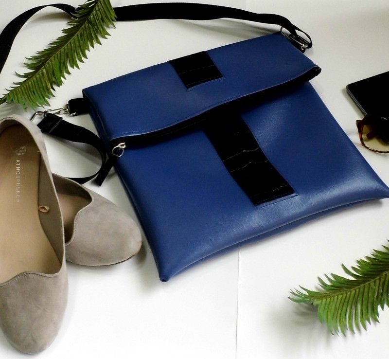 Vegan Crossbody Bag, Blue Crossbody Bag, Foldover Bag, Vegan Leather Shoulder Bag, Faux Leather Laptop Bag, Bespoke Bag