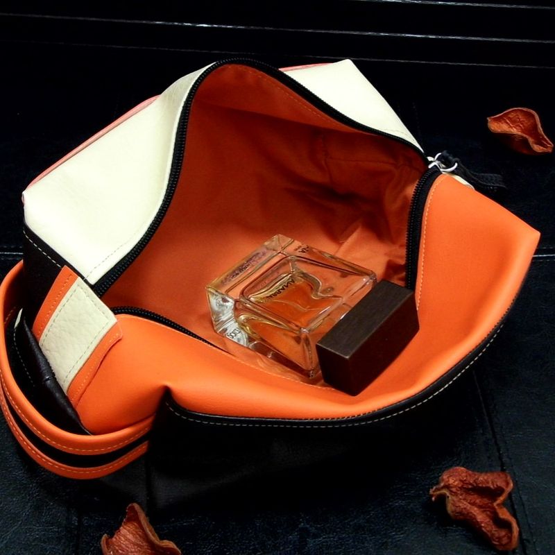 Vegan Makeup Bag, Orange Toiletry Bag, Travel Toiletry Case, Shaving Bag, Large Toiletry Bag, Boxy Makeup Bag, Travel Zipper Pouch