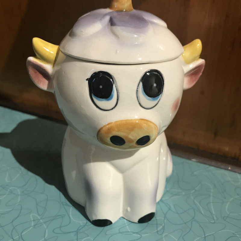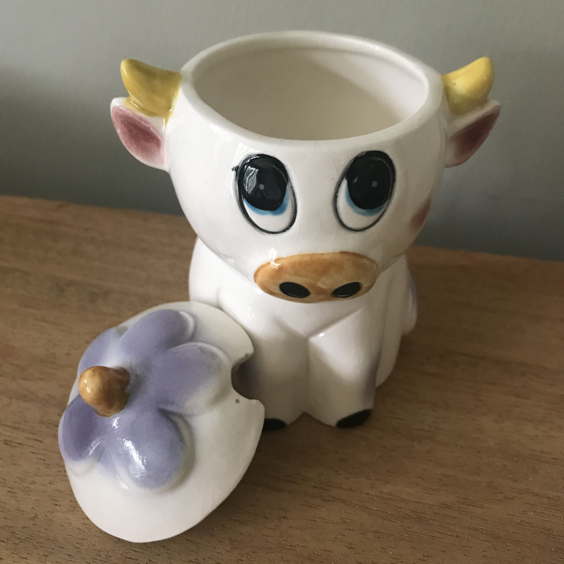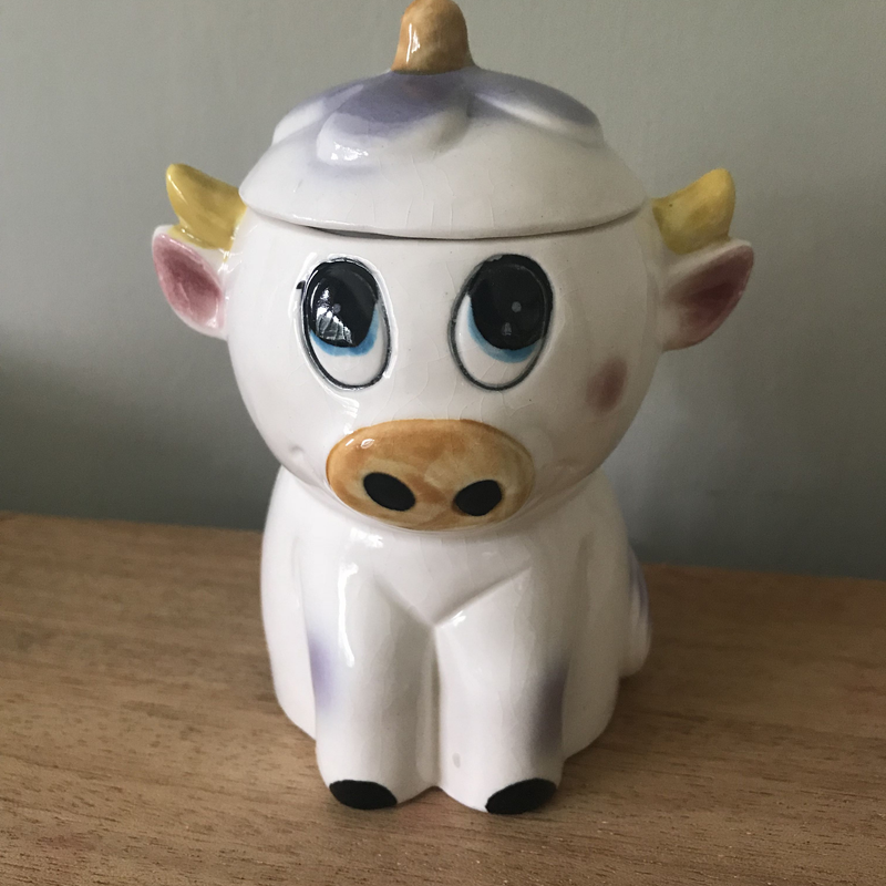 Vintage Purple Cow Sugar Bowy/ Ceramic Sugar bowl / Farmhouse Kitchen / Cow Collectible / Cow Decor / Country Kitchen / 50s Kitchen Decor