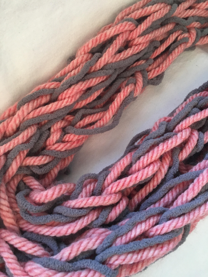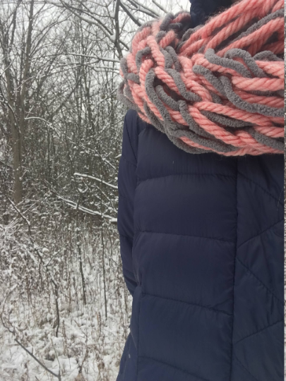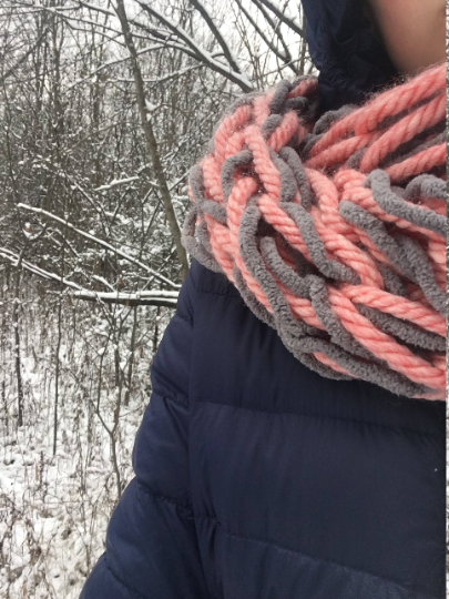 Warm, thick,colorful and fun coral/pink and gray infinity scarf