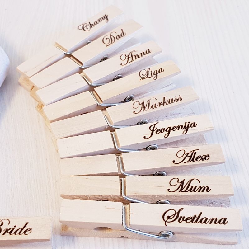 wedding decor,clothespins,handmade,homemade,personalized clothespins,personal wedding,rustic wedding sign,rustic wedding decor,home handmade Qty: 1 Please write me note with personal name or custom text Shipping All items are posted from Latvia, EU using class A Postage with tracking number Estimate Shipping times USA/Canada – 10 Days UK/Europe – 5 to 10 Days About Shop We offer wooden gift items for special occasions. Everything is created using natural ecofriendly material in our country house in the Baltic Forest. I do have various items and can custom make designs you wish. I will be happy to create a special personalized product to match your needs using my creativity and experience. Therefore, please do not hesitate to contact me with your personal designs ideas Thank you Liga Silova Gift Idea Boutique GiftIdeaBoutique.etsy.com